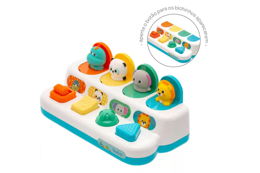 Brinquedo Didático com Botões Pop-Up Zoo, uma experiência encantadora para os pequenos exploradores.