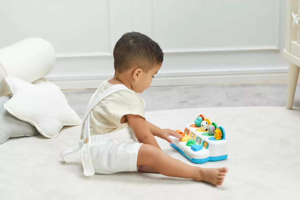 O Pop-up Zoo é composto por 4 botões interativos e o desafio da brincadeira é descobrir como cada um funciona. Tem botão para apertar, girar, empurrar e é preciso o movimento certo para encontrar os animaizinhos!